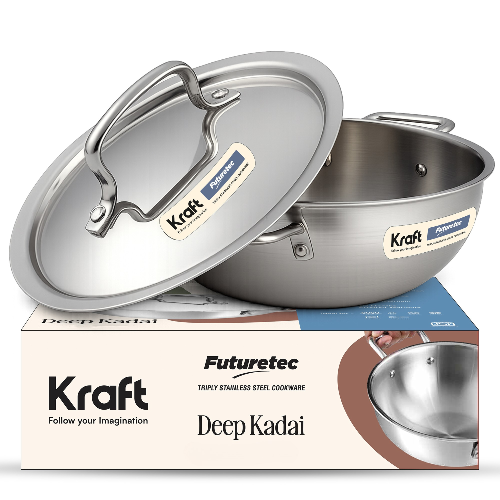 Kraft Futuretec Triply Stainless Steel Extra Deep Kadai (Induction Friendly)