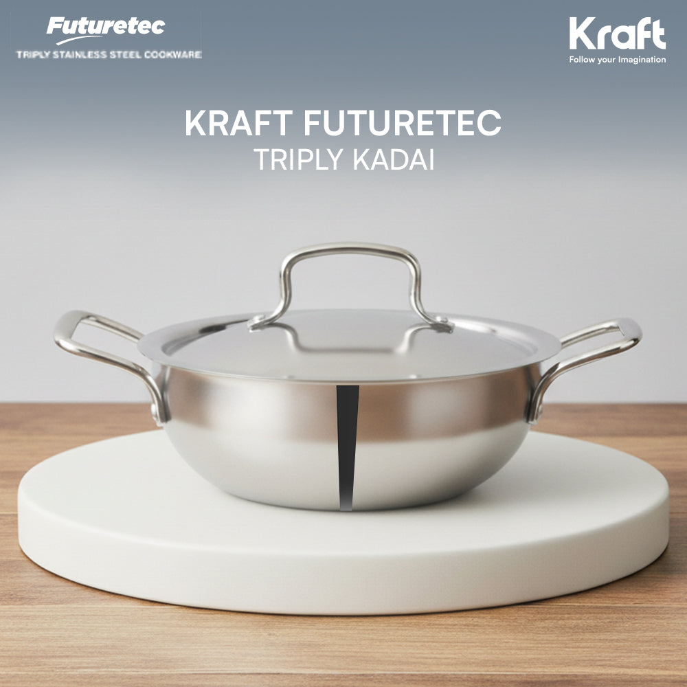 Kraft Futuretec Triply Stainless Steel Extra Deep Kadai (Induction Friendly)